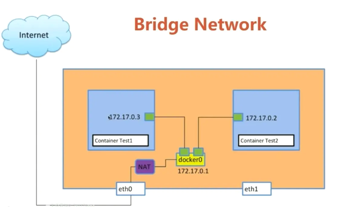在默认情况下,docker 会在 host 机器上新创建一个 docker0 的 bridge:可以把它想象成一个虚拟的交换机,所有的容器都是连到这台交换机上面的。docker 会从私有网络中选择一段地址来管理容器,比如 172.17.0.1/16,这个地址根据你之前的网络情况而有所不同。