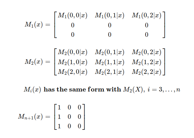 βi是m*1的列向量, Mi(yi,yi+1|x)是m*m的矩阵。β解释:(当前词与下一个词连接的边的代价 + 下一个词的代价) 分别乘以下一个词的β,再相加。
