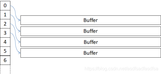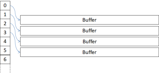ByteBlockPool是一个由多个Buffer构成的数组,如上图右侧所示,左侧的数字则代表了每一个Buffer在这个二维数组中的Index位置。Buffer的长度是固定的,当一个Buffer被写满以后,需要申请一个新的Buffer,如果这个Buffer数组要扩展,仅仅是将已有Buffer的引用拷贝了一次,而不需要拷贝数据本身。Buffer本质上是一个byte[],因此,ByteBlockPool其实是一个byte的二维数组,用Buffer数组来表达则更易理解。