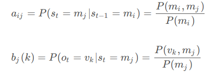 若有足够多的人工标记(Human Annotated)数据,即知道隐含状态mj出现的次数#(mj),以及每次经过这个状态后,生成观测状态vk的次数#(vk,mj),则可用极大似然估计求解