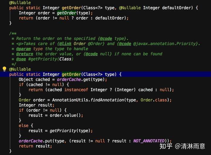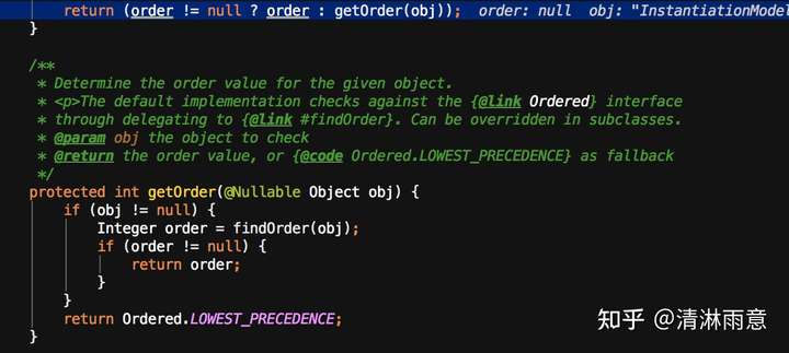 逻辑就是,类若有@Order注解,获取配置的顺位,否则看类上是否有javax.annotation.Priority注解,获取配置的value,若都没有,则顺位为Ordered.LOWEST_PRECEDENCE