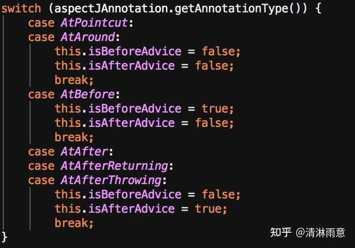 除了Around和Before,其实就是相当于进行了倒序排序,为什么呢?因为spring把增强方法串成了一条增强链,越先执行的其增强逻辑(切面注解对应的方法)会越后执行