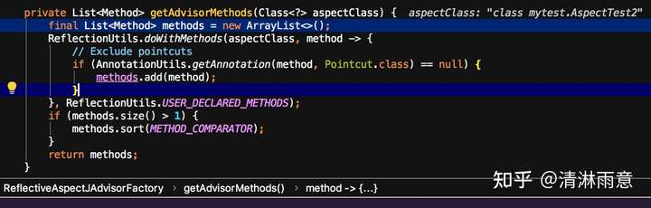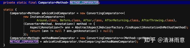 先找到class里没有@Pointcut注解的方法,然后通过METHOD_COMPARATOR排序