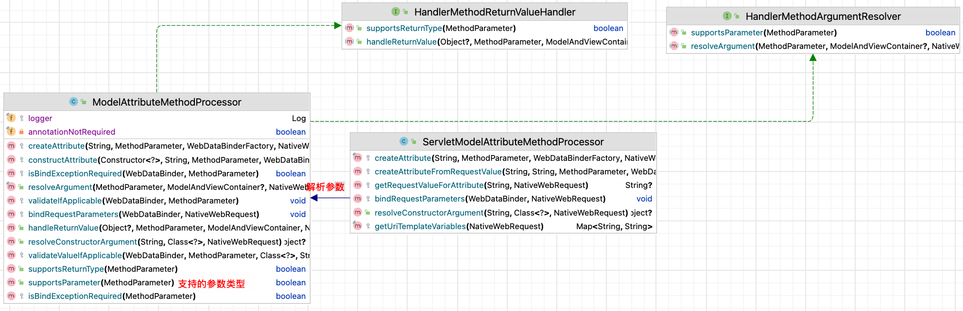 我们先看下 ServletModelAttributeMethodProcessor 的类结构,他是继续了 ModelAttributeMethodProcessor: