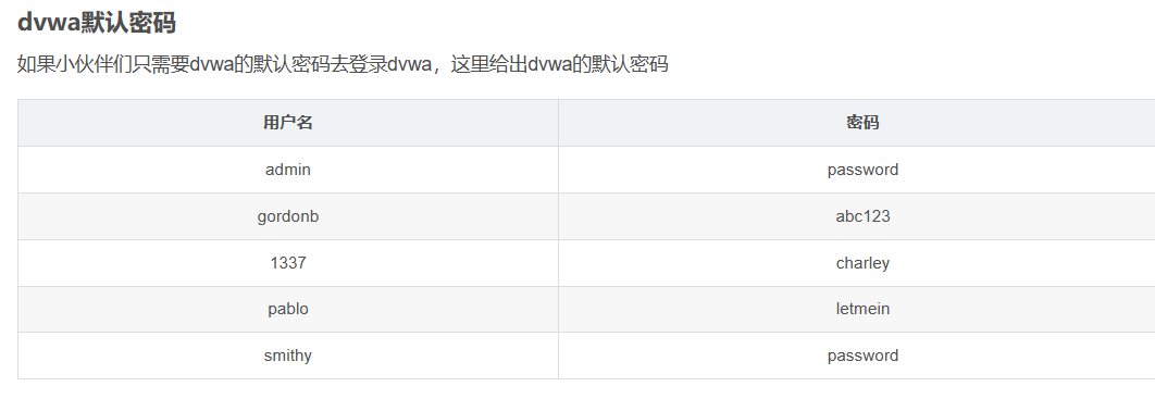 有一点不明白就是,创建DVWA在数据库数据库时会自动生成这些用户名和密码,暂时不知道在哪里进行修改。