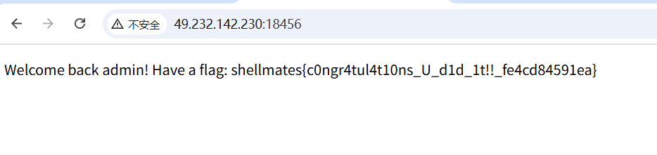 接着绕过用户名的正则,这里采用内联注释的形式,拼接union select,将自定义的盐和密码的加密字符串注入,覆盖密码查询结果,使用自定义的密码即可通过密码校验,于是可构造: