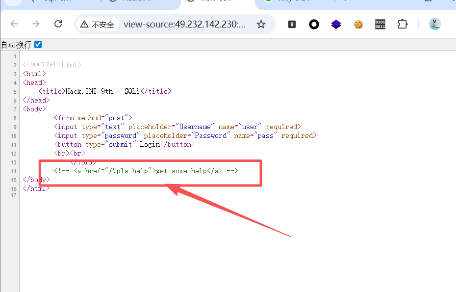 登陆后发现(这串英文的意思是你为什么要欺负我)然后此时想起了查看源代码(有时候一些关键信息会藏在源代码之中)