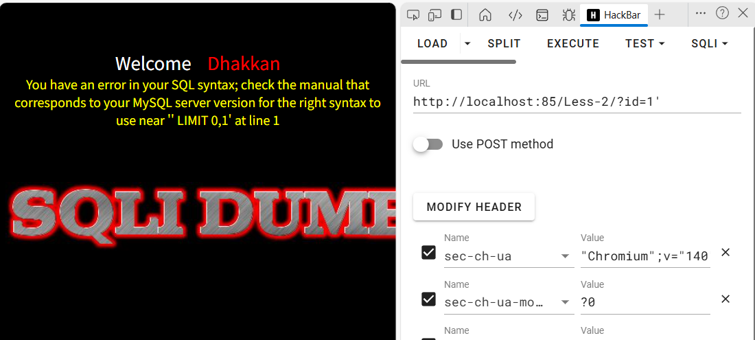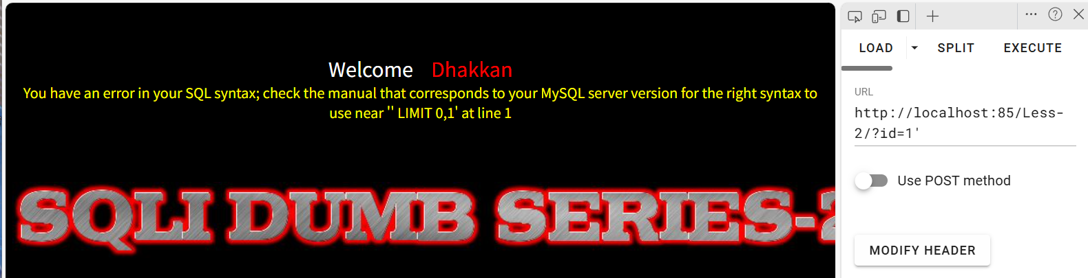 - 并且数据库错误会显示到页面。例如SQLI-LABS的less-2,我们可以很明显的看到错误是爆露在页面的。