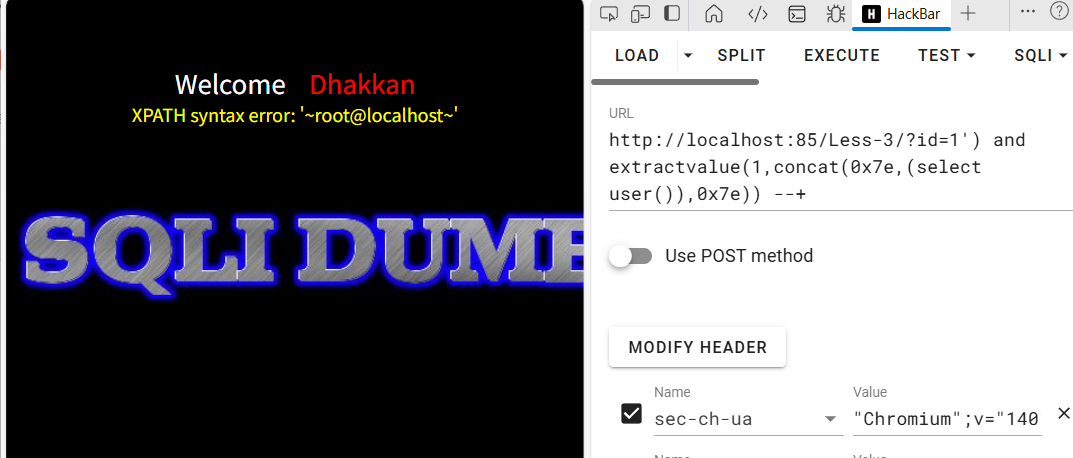 发现页面正常回显,此时获取当前的用户名和数据库名