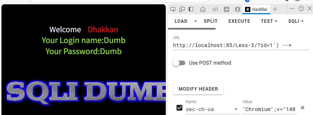 根据测试注入双引号跟括号可以完成此闭合,所以此时,应该使用如图所示的方式进行闭合