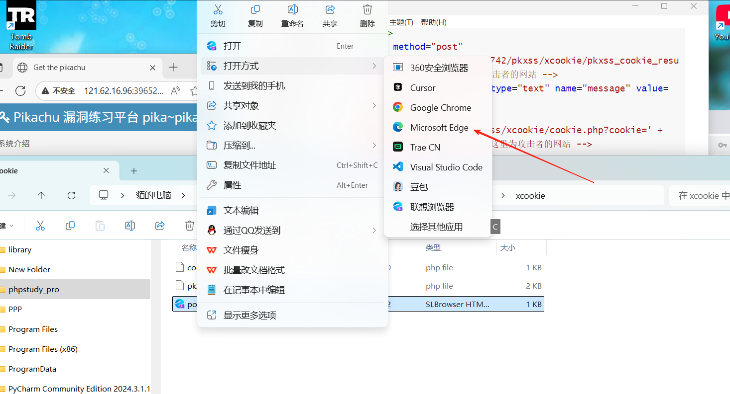 点击打开后,跳转到伪造页面,并成功获取cookie值