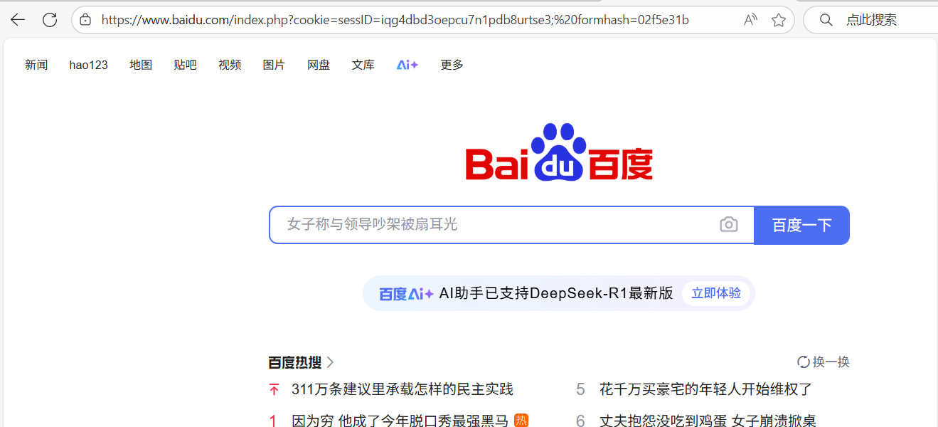在输入这段脚本以后,便可以实现获取对方cookie值(当然要用自己搭建的网站,即百度的网址需要更换)