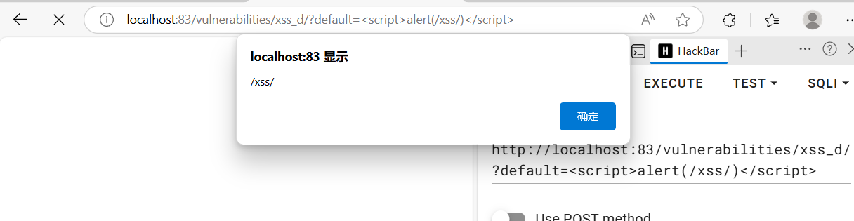 因为我们将代码上传后,在浏览器渲染时,执行了我们构造的恶意语句,JavaScript中函数alert()的作用就是让浏览器弹框,所以浏览器会显示/xss/,如上图所示。而document.cookie是获取cookie值。
