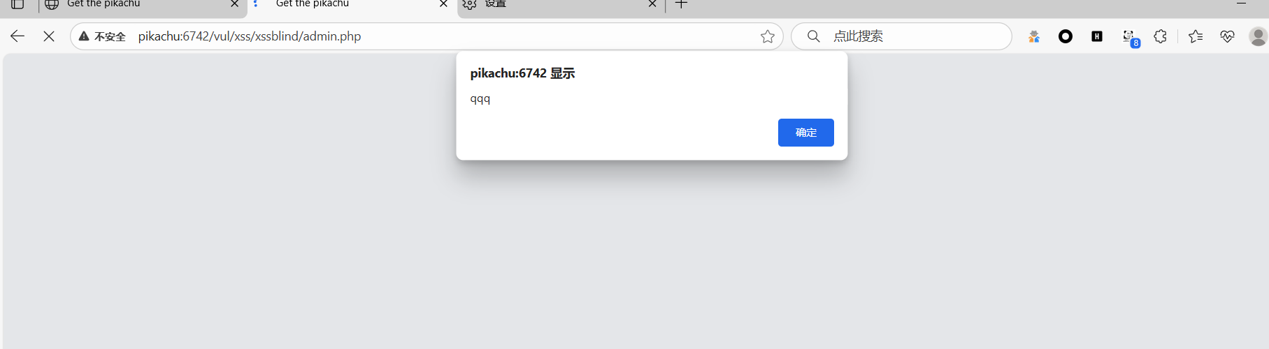 将传入的参数改为“<script>alert(123)</script>”我们可以发现其出现了弹窗,存在XSS漏洞。