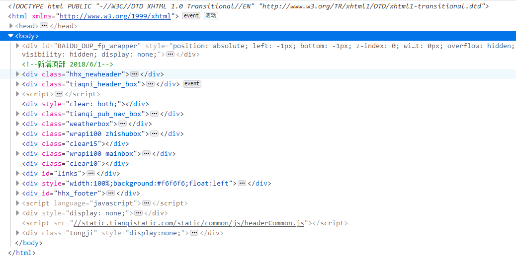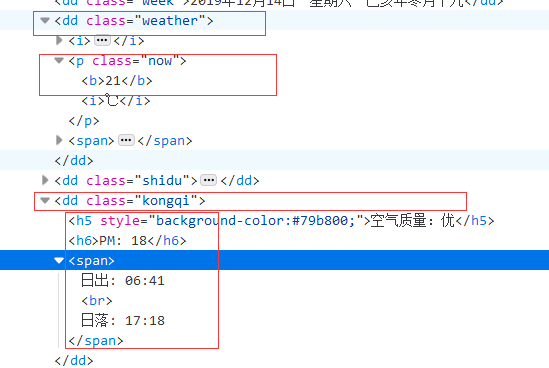 从这里我们可以明确的看到各个天气信息所属的标签,很容易就可以遍历得出
