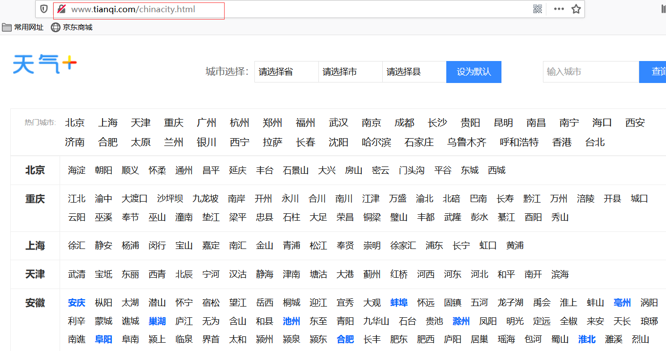 从这个链接中我们可以得到所有城市的信息http://www.tianqi.com/chinacity.html