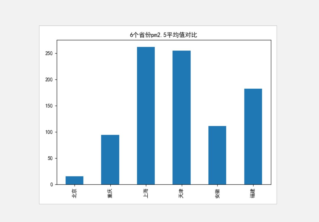 计算全国各省的pm2.5平均值,并绘成柱状图