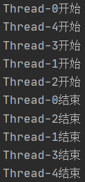 1 public class SynchronizedTest { 2 3 static final Object obj = new Object(); 4 5 public static void main(String[] args) { 6 for (int i = 0; i < 5; i++) { 7 new Thread(()->{ 8 synchronized(obj) { 9 try { 10 System.out.println(Thread.currentThread().getName() + "开始"); 11 obj.wait(); 12 System.out.println(Thread.currentThread().getName() + "结束"); 13 } catch (InterruptedException e) { 14 e.printStackTrace(); 15 } 16 } 17 }).start(); 18 } 19 try { 20 Thread.sleep(2000); 21 } catch (InterruptedException e) { 22 e.printStackTrace(); 23 } 24 synchronized(obj) { 25 obj.notifyAll(); 26 } 27 } 28 }