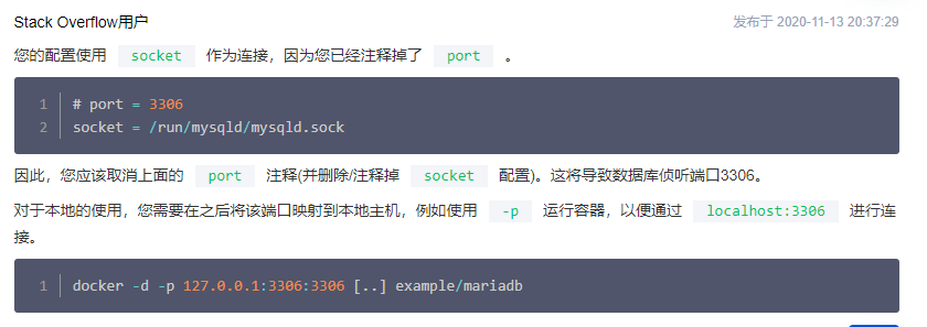 我们需要注释 socket ,并取消 prot = 3306 的注释。