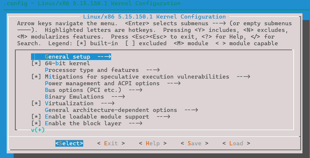 配置linux内核, 进入配置页面