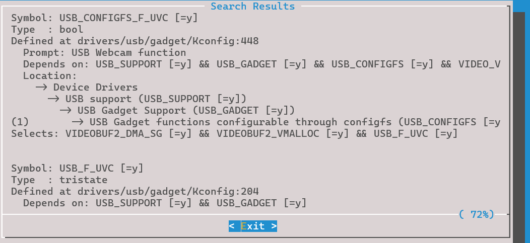 在内核配置页面按下 / 搜索 uvc,找到uvc相关的内核配置