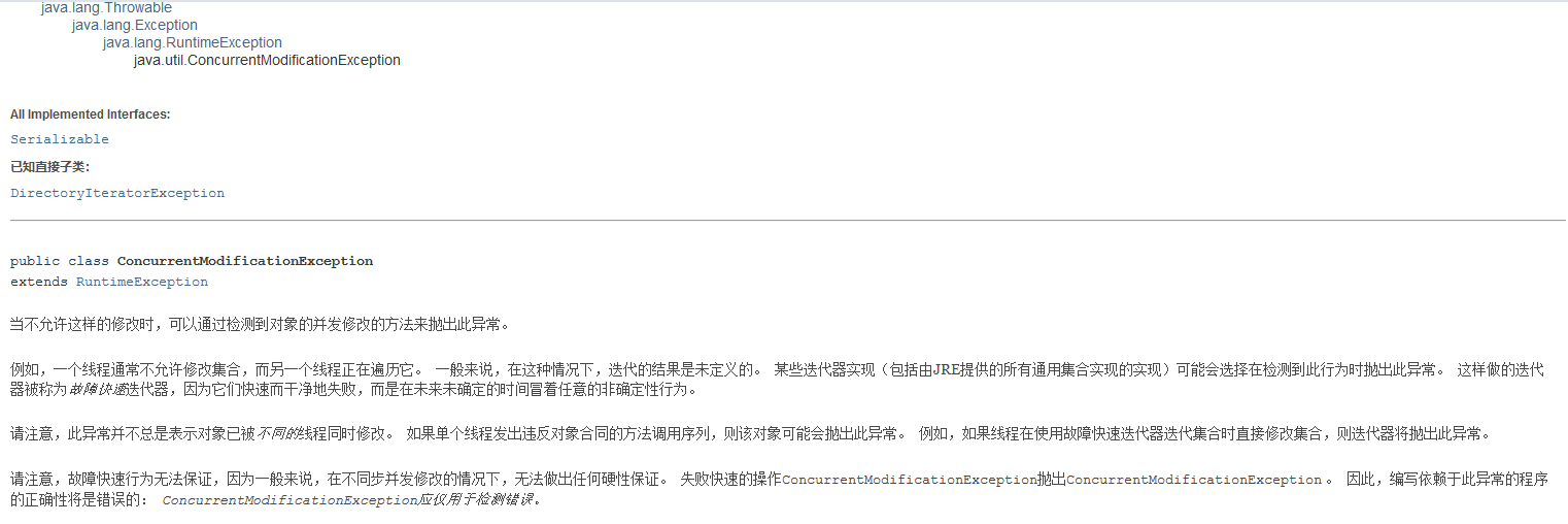 某些迭代器实现(包括由JRE提供的所有通用集合实现的实现)可能会选择在检测到此行为时抛出此异常