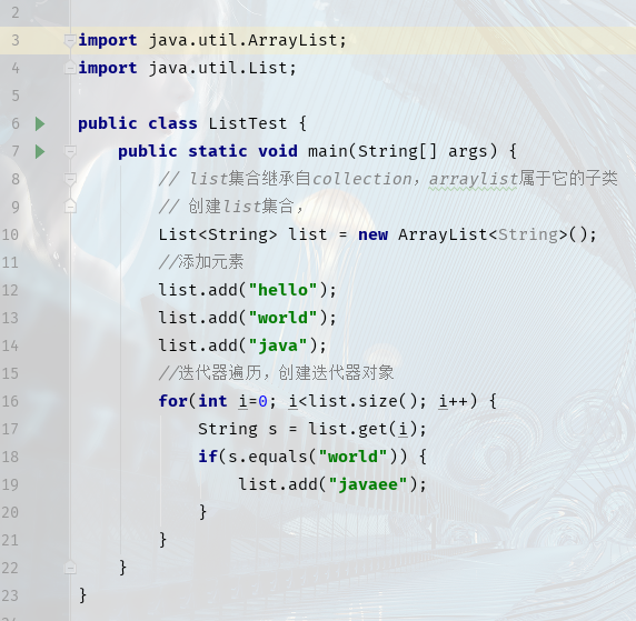 在使用list集合时,如果我们使用迭代器进行遍历,同时在遍历过程中尝试添加元素,运行后会爆出这样的错误