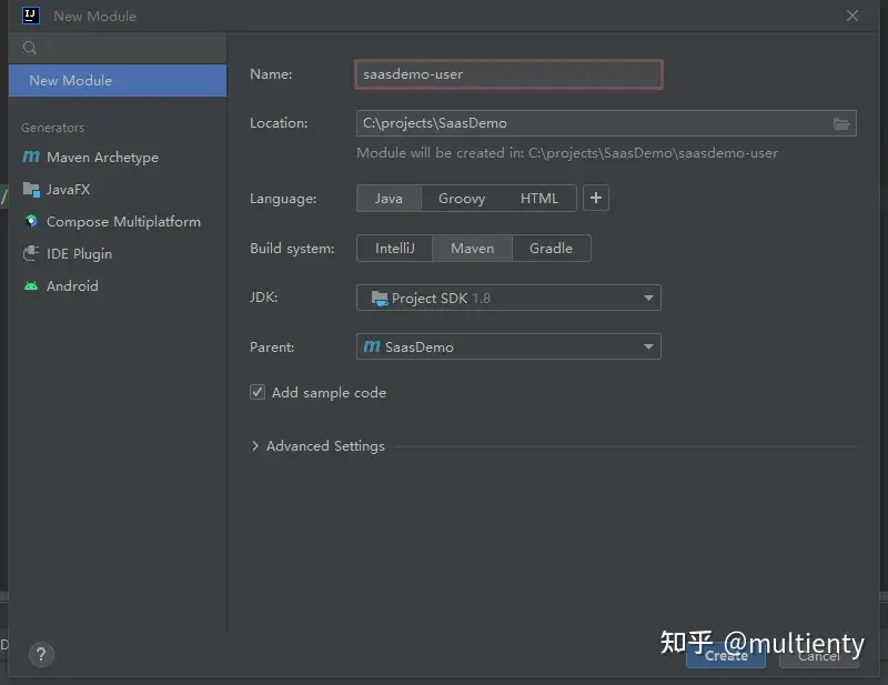 创建saasdemo-user模块
