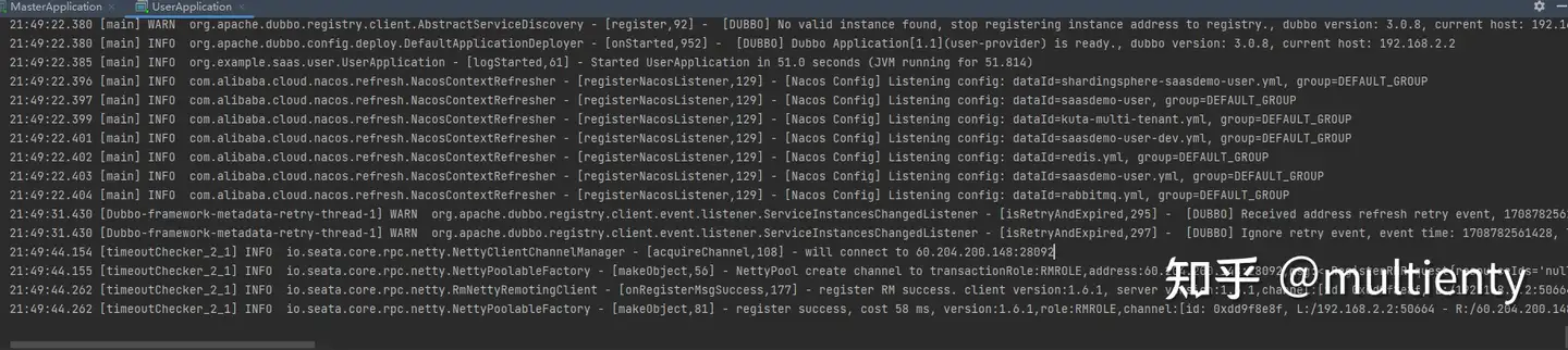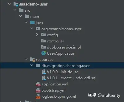 上一章中saasdemo-user-dev.yml配置文件需要做如下调整,用于创建租户