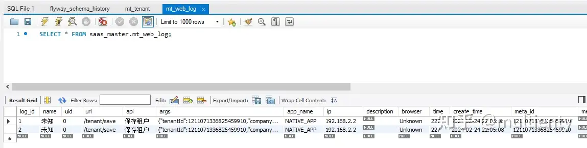我们查看日志表,已正常保存日志,接下来我们需要为用户模块生成代码