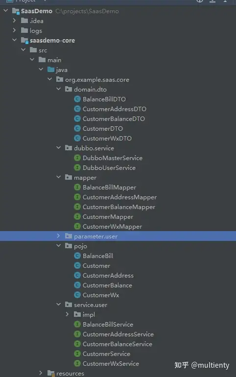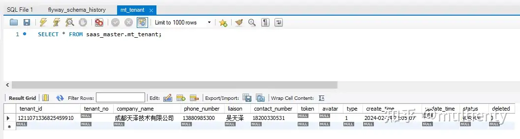 代码生成器会根据shardingsphere的配置生成不同的代码,用户模块仅分库,会加入tenant_id,后续订单模块会有分表,到时候可以看到更多的变化。