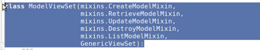 一进去,就可以豁然开朗了,这些再mixin里面是看到过的。ModelViewSet是对mixin的一些类和GenericViewSet的封装。