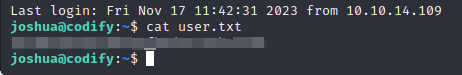 得到joshua的密码,尝试ssh连接,得到user.txt