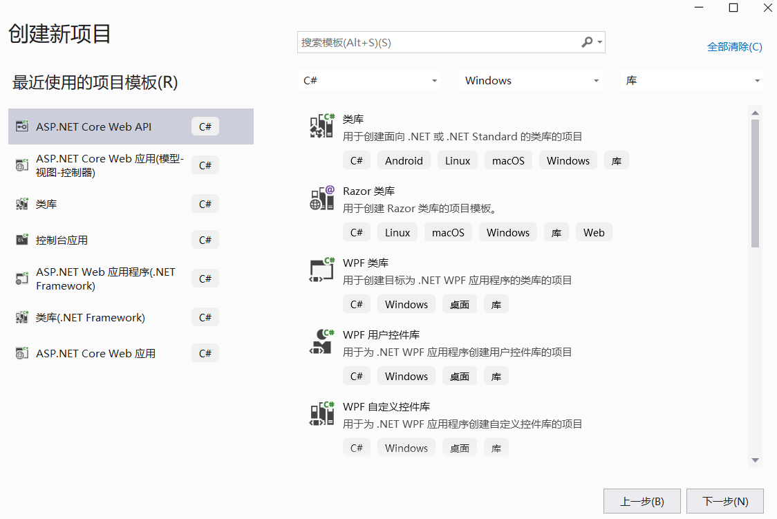 首先,介绍一下如何创建项目。打开VS创建一个ASP.NET Core Web API项目。