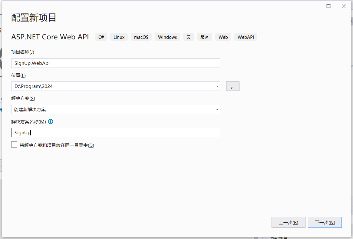 项目名称SignUp.WebApi,解决方案名称SignUp。