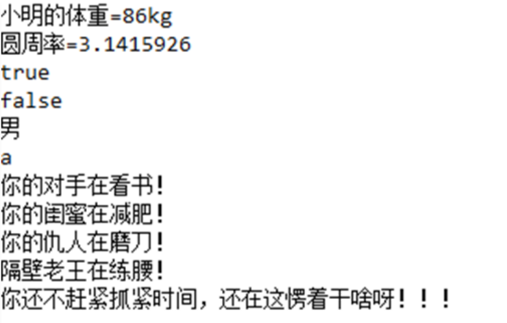 System.out.println("你还不赶紧抓紧时间,还在这愣着干啥呀!!!");