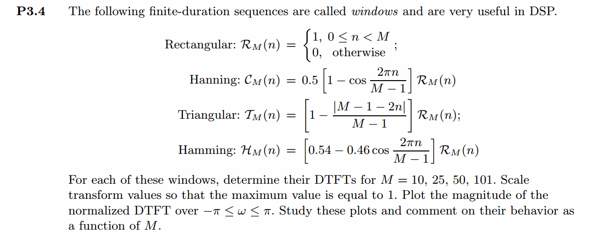 一、 在数字信号处理(DSP)中非常有用的四种有限长序列,也称为窗函数。将各自幅度谱归一化(即幅度最大值为1),然后画出图形。