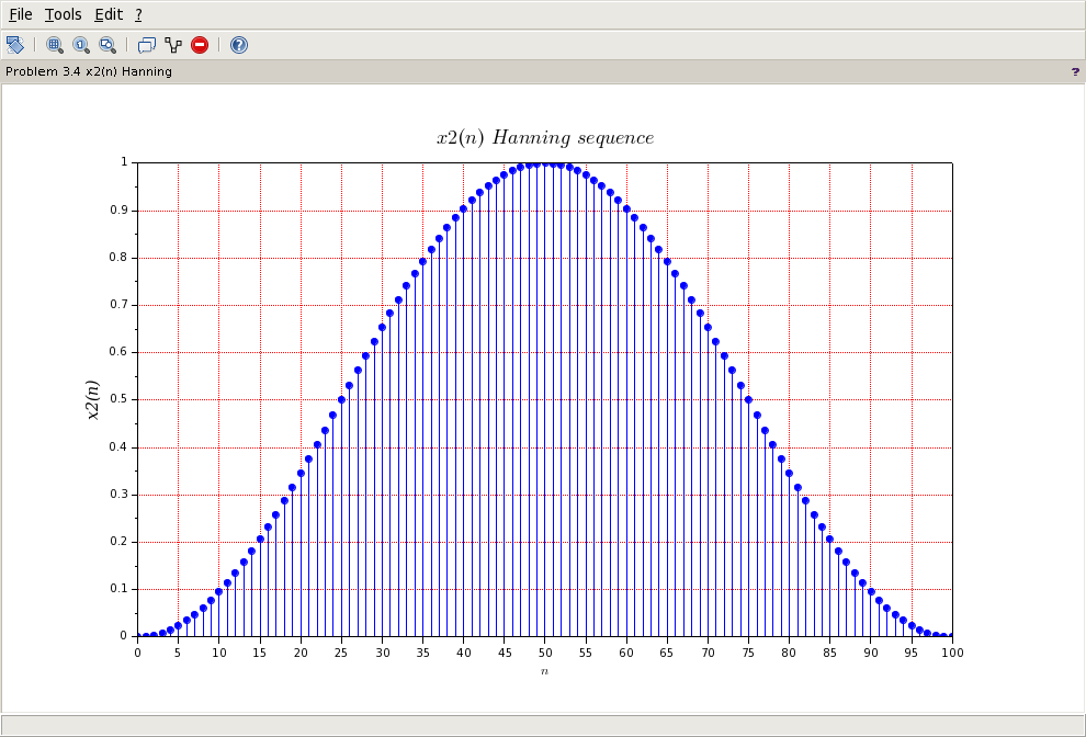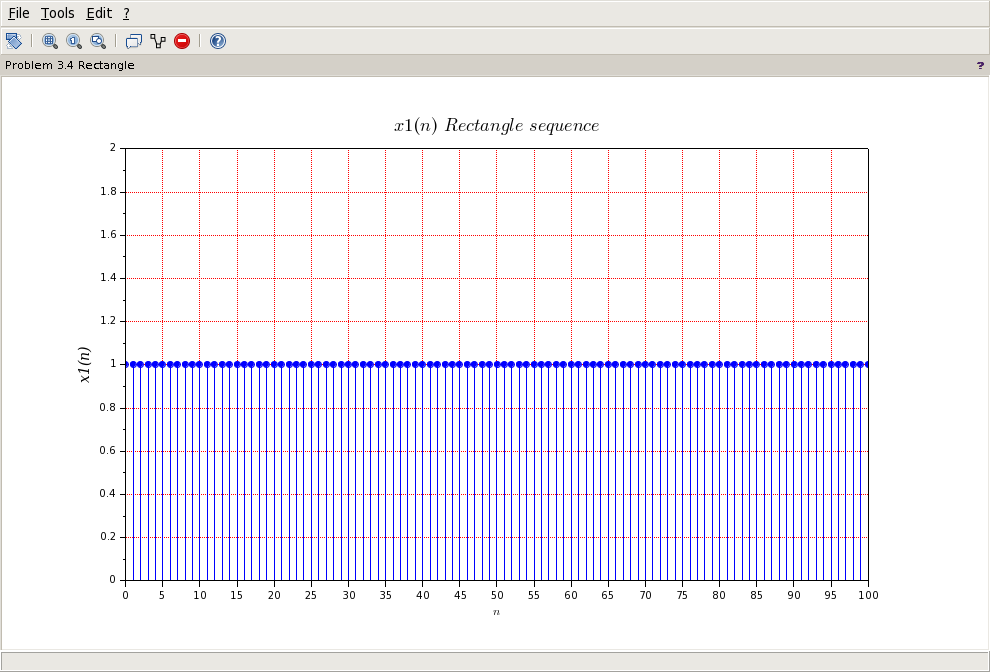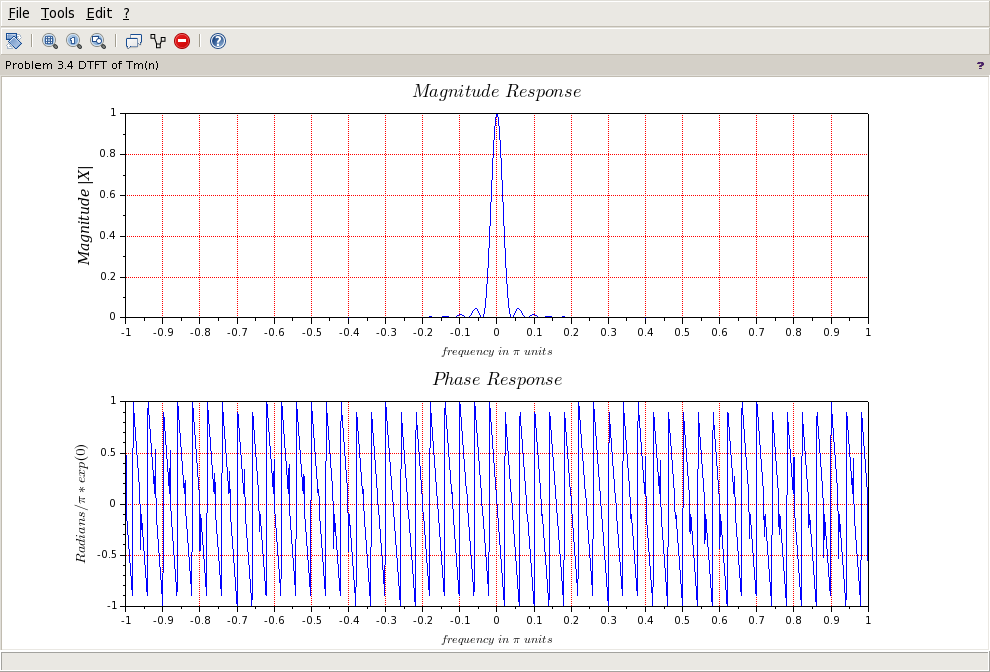 1 // Book Author:Vinay K Ingle, John G Proakis 2 // 3 // Problem 3.4 4 // script by: KY 5 // 6 clear, clc, clf(); 7 8 mode(2); 9 funcprot(0); 10 load('../fun/lib'); 11 12 // ----------------------------------------------------------------------------- 13 // START Output Info about this sce-file 14 mprintf('\n***********************************************************\n'); 15 [ban1,ban2] = fun_banner(); 16 mprintf("\n <DSP using MATLAB> 3rd edition, Problem 3.4 \n"); 17 mprintf(" ----------------------------------------------------------\n\n"); 18 19 // ----------------END---------------------------------------------------------- 20 21 22 //% ---------------------------------------------- 23 //% Rectangle Window sequence 24 //% ---------------------------------------------- 25 M = 101; 26 27 n1_start = 0; n1_end = M; 28 n1 = [n1_start : n1_end - 1]; 29 30 x1 = ones(1, length(n1)); 31 32 // ----------------------------------------------------------------------------- 33 // --------------------START f0 figure----------------------------------------- 34 f0=scf(0); //creates figure with id==0 and make it the current one 35 f0.figure_size=[1000,700]; // adjust window size 36 f0.background=8; // add background color 8-white 37 f0.figure_name="Problem 3.4 Rectangle"; // name window 38 subplot(1, 1, 1); 39 40 plot(n1,x1,'bo'); 41 plot(n1,x1,'b.'); 42 plot2d3(n1,x1,2); // Create plot with blue line 43 title("$x1(n)\ Rectangle\ sequence$",'fontname',7,'fontsize',4); 44 //title("mprintf('x1(n) sequence, M = %d', M)"); 45 xlabel('$n$','fontname',3); ylabel('x1(n)','fontname',3,'fontsize',3); 46 xgrid(5,0,7); // color, thickness, style 47 a0=get("current_axes"); // get the handle of the newly created axes 48 //a0.data_bounds=[-4,6,-6,6]; 49 // ----------------------------------------------------------------------------- 50 // --------------------END f0 ------------------------------------------------- 51 52 53 MM = 500; 54 k = [-MM:MM]; // [-pi, pi] 55 //k = [0:M]; // [0, pi] 56 w = (%pi/MM) * k; 57 58 [X1] = fun_dtft(x1, n1, w); 59 60 magX1 = abs(X1); angX1 = fun_angle(X1); realX1 = real(X1); imagX1 = imag(X1); 61 62 //%% --------------------------------------------------------------------------- 63 //%% START X(w)'s mag ang real imag 64 // --------------------START f1 figure----------------------------------------- 65 f1=scf(1); //creates figure with id==0 and make it the current one 66 f1.figure_size=[1000,700]; // adjust window size 67 f1.background=8; // add background color 8-white 68 f1.figure_name="Problem 3.4 DTFT of Rm(n)"; // name window 69 subplot(2, 1, 1); 70 plot(w/%pi,magX1/max(magX1)); 71 title("$Magnitude\ Response$",'fontname',7,'fontsize',4); 72 xlabel('$frequency\ in\ \pi\ units$','fontname',3); ylabel('Magnitude |X|','fontname',3,'fontsize',3); 73 xgrid(5,0,7); // color, thickness, style 74 a0=get("current_axes"); // get the handle of the newly created axes 75 //a0.data_bounds=[-4,6,-6,6]; 76 77 subplot(2, 1, 2); 78 plot(w/%pi,angX1/%pi*exp(0)); 79 title("$Phase\ Response$",'fontname',7,'fontsize',4); 80 xlabel('$frequency\ in\ \pi\ units$','fontname',3); ylabel('$Radians/\pi*exp(0)$','fontname',3,'fontsize',3); 81 xgrid(5,1,7); // color, thickness, style 82 a1=get("current_axes"); // get the handle of the newly created axes 83 //a1.data_bounds=[-4,6,-2,2]; 84 // ----------------------------END f1------------------------------------------- 85 //%% END X(w)'s mag ang real imag 86 //%% --------------------------------------------------------------------------- 87 88 89 //% -------------------------------------------------- 90 //% Hanning Window Sequence 91 //% -------------------------------------------------- 92 //n2_start = -9; n2_end = 15; 93 //n2 = [n2_start : n2_end]; 94 n2 = n1; 95 x2 = 0.5 * (1 - cos(2*%pi*n1/(M-1))) .* x1; 96 97 // ----------------------------------------------------------------------------- 98 // --------------------START f2 figure----------------------------------------- 99 f2=scf(2); //creates figure with id==0 and make it the current one 100 f2.figure_size=[1000,700]; // adjust window size 101 f2.background=8; // add background color 8-white 102 f2.figure_name="Problem 3.4 x2(n) Hanning"; // name window 103 subplot(1, 1, 1); 104 105 plot(n2,x2,'bo'); 106 plot(n2,x2,'b.'); 107 plot2d3(n2,x2,2); // Create plot with blue line 108 title("$x2(n)\ Hanning\ sequence$",'fontname',7,'fontsize',4); 109 //title(mprintf('x1(n) sequence, M = %d', M)); 110 xlabel('$n$','fontname',3); ylabel('x2(n)','fontname',3,'fontsize',3); 111 xgrid(5,0,7); // color, thickness, style 112 a0=get("current_axes"); // get the handle of the newly created axes 113 //a0.data_bounds=[-4,6,-6,6]; 114 // ----------------------------------------------------------------------------- 115 // --------------------END f2 ------------------------------------------------- 116 117 118 MM = 500; 119 k = [-MM:MM]; // [-pi, pi] 120 //k = [0:M]; // [0, pi] 121 w = (%pi/MM) * k; 122 123 [X2] = fun_dtft(x2, n2, w); 124 125 magX2 = abs(X2); angX2 = fun_angle(X2); realX2 = real(X2); imagX2 = imag(X2); 126 127 //%% --------------------------------------------------------------------------- 128 //%% START X(w)'s mag ang real imag 129 // --------------------START f3 figure----------------------------------------- 130 f3=scf(3); //creates figure with id==0 and make it the current one 131 f3.figure_size=[1000,700]; // adjust window size 132 f3.background=8; // add background color 8-white 133 f3.figure_name="Problem 3.4 DTFT of Cm(n)"; // name window 134 subplot(2, 1, 1); 135 plot(w/%pi,magX2/max(magX2)); 136 title("$Magnitude\ Response$",'fontname',7,'fontsize',4); 137 xlabel('$frequency\ in\ \pi\ units$','fontname',3); ylabel('Magnitude |X|','fontname',3,'fontsize',3); 138 xgrid(5,0,7); // color, thickness, style 139 a0=get("current_axes"); // get the handle of the newly created axes 140 //a0.data_bounds=[-4,6,-6,6]; 141 142 subplot(2, 1, 2); 143 plot(w/%pi,angX2/%pi*exp(0)); 144 title("$Phase\ Response$",'fontn