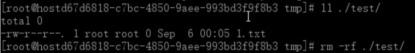 利用rm -rf 删除test目录,会发现没有任何提示: