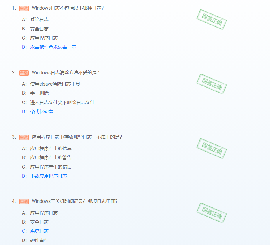 (2) 应用程序日志、安全日志、系统日志、DNS日志默认位置:%sys temroot%\system32\config,默认文件大小512KB,管理员可以改变这个默认大小。
