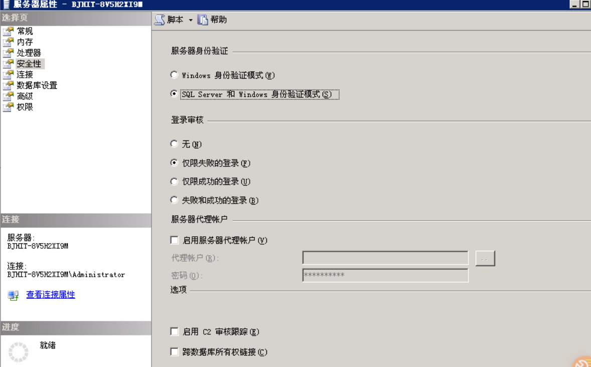 (2)使用SQL Server Management Studio管理SQL Server身份验证的登录帐号。