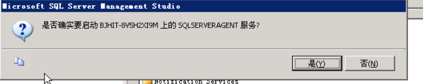 当提示是否确实要启动SQLSERVERAGENT服务时,点击是。