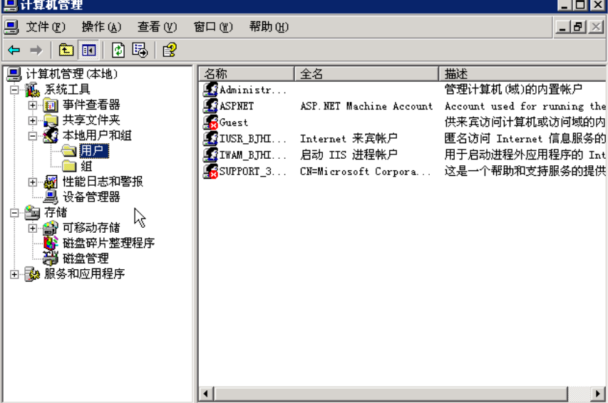 然后一次展开系统工具-本地用户和组-用户,此时在右边可以看到当前系统中所有的用户。
