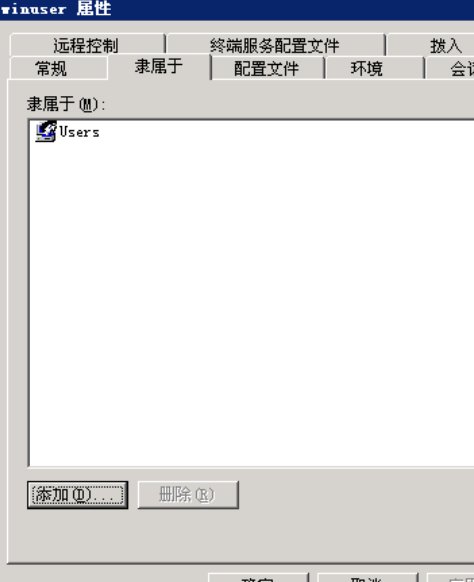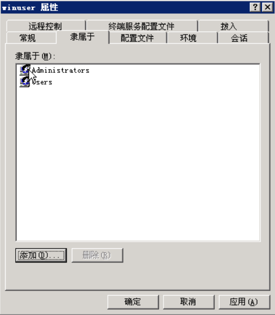 同样点击确定。此时,在winuser属性的隶属于选项卡下可以看到,多了一个administrators。