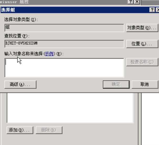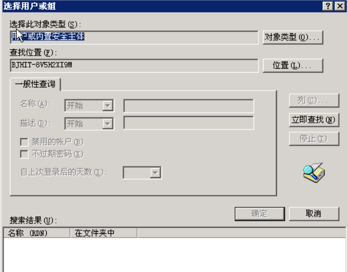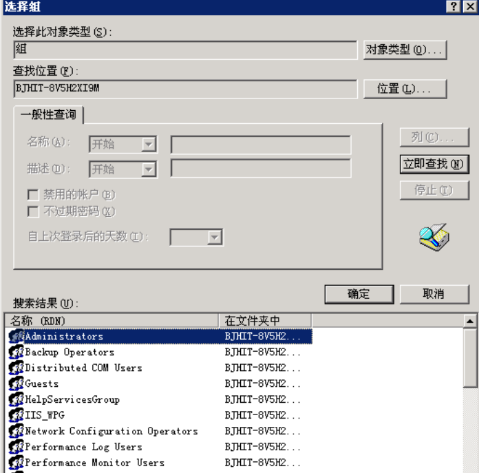 弹出查找对象对话框,在里面选择一个用户,选择administrators。