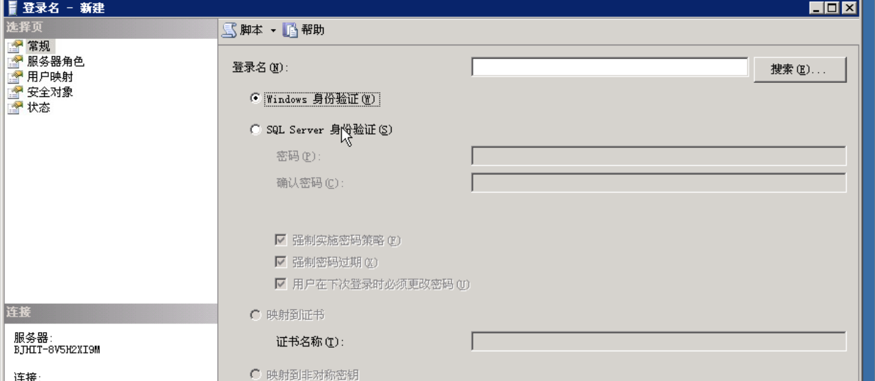 注意:采用该方法创建的SQL Server登录账号只能用于登录SQL Server服务,与登录的计算机的Windows账号无关,不能用此账号登录Windows。
