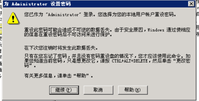 由于远程桌面注销会又会自动连接,所以我们需要先修改当前用户(administrator)的登录密码。
