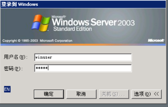 然后会自动到登陆页面,输入之前新建的winuser和密码,点击确定登录。